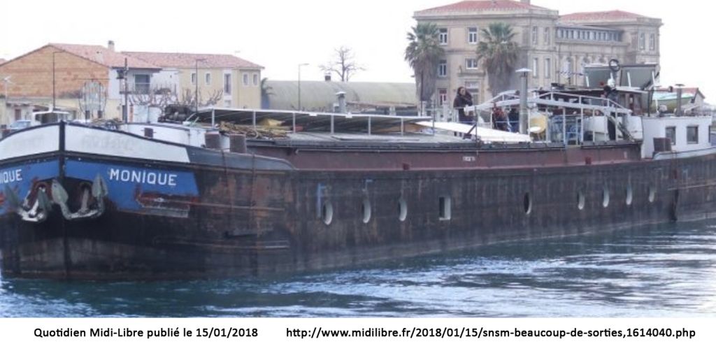 il est en ce moment au Quai d'Alger à Sète , à ce qu'on m'a dit il était descendu d'Avignon pour aider son copain le "Cordialité" qui s'était fait coller par le vent et était échoué à Aigues mortes en allant direction Sète mais c'est le "Barrès" qui a réussi à les arracher.