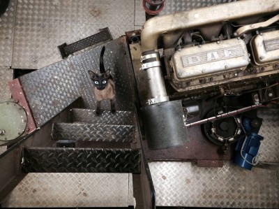 Plus joyeux, ci-dessous des photo de mon bateau et du moteur Willem DEUTZ d'origine (Cologne), qui fonctionne toujours. Je navigue toujours avec