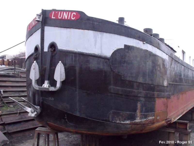 "L'Unic", armateur Ballinger, Paris, 39,05 x 5,07 m, 327 tpl, construit à Flavinne en 1927, moteur M.A.N. de 240 ch construit en 1941.