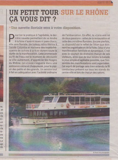 A l'occasion de la foire de Vienne un article sur le Livia (navette fluviale) durant la foire.