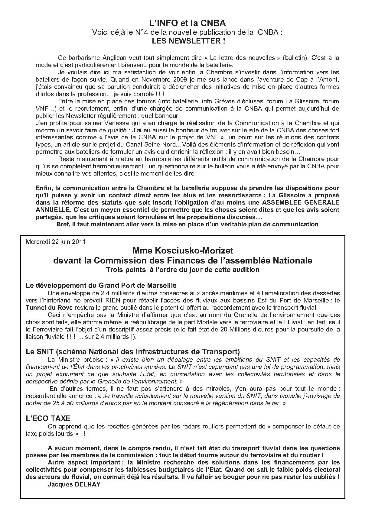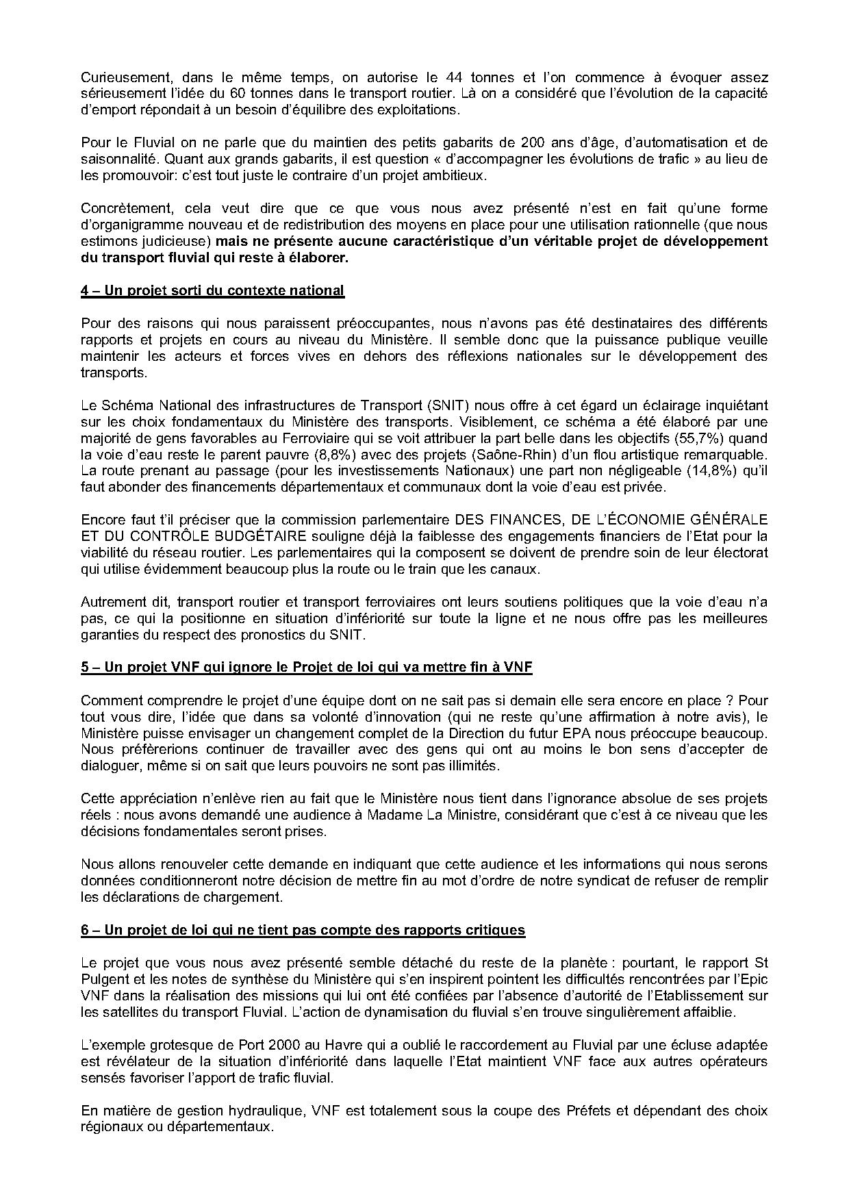 Toujours sans réponse, nous avons pris la liberté de refaire encore un courrier envoyé le 4 Juin par E Mail au cabinet de Mr Cuvillier pour demander à ce que notre Ministre donne des instructions précises à la Direction des transports pour travailler à la rédaction d’un Décret imposant REGLEMENTAIREMENT les conditions d’affrètement dans le transport fluvial en remplacement des contrats types (à caractère supplétif). Ces contrats types sont la porte ouverte pour les donneurs d’ordre à ne respecter aucune règle et à abuser au quotidien de leur position dominante en imposant unilatéralement leurs règles et leur prix sans négociation possible.