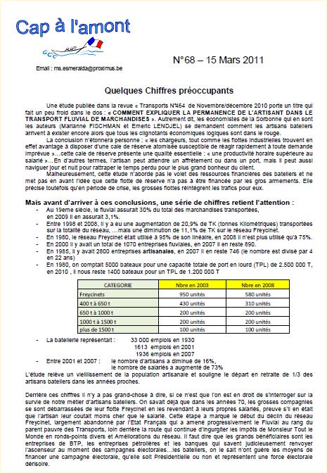 Ø 3 - Les discussions en cours sur la refonte des contrats types n’ont guère de signification dans la mesure où les donneurs d’ordre et courtiers maintiennent un chantage permanent sur les prix et les conditions de réalisation des transports (délais de route, surestaries…) : le batelier récalcitrant étant automatiquement privé de travail.