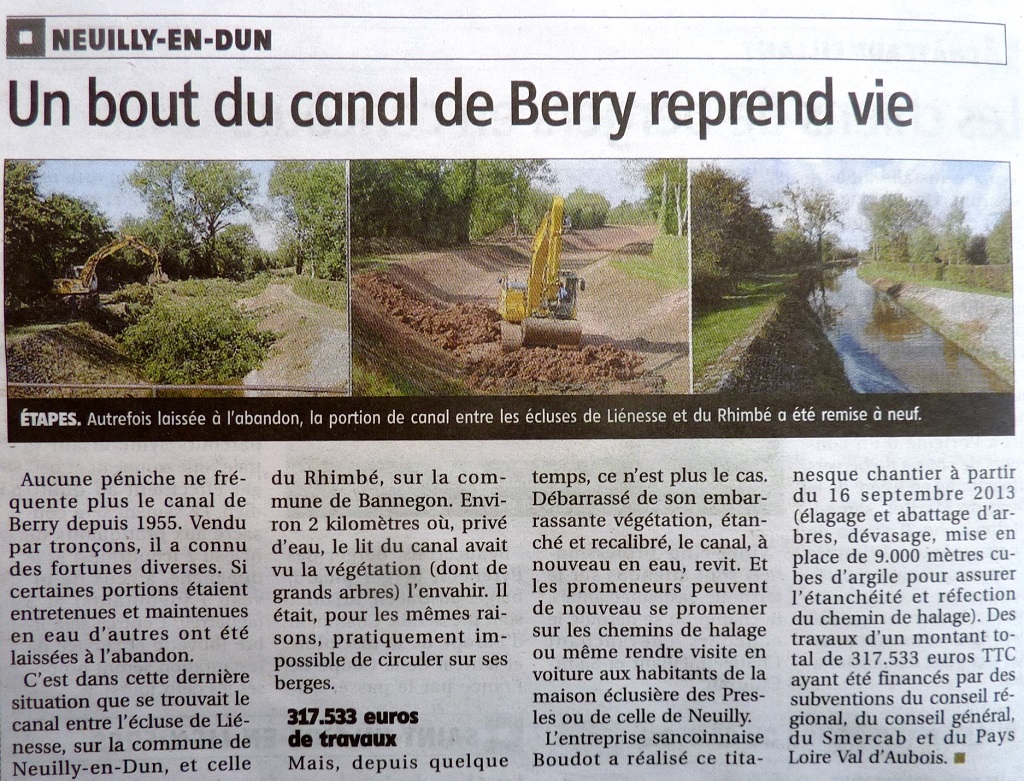 Avec la rénovation du canal et la construction de 2 "berrichons" à Grigny et à Vallon en Sully,