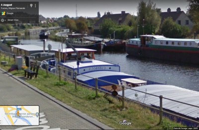 JEANNE, il était amarré à Furnes (Veurne), en bateau-logement. Je suis donc allé me promener là-bas grâce à Street View, de Google, et j'en ramène quelques photos :
