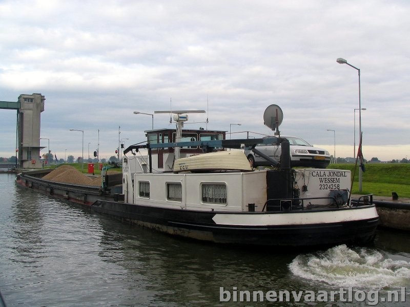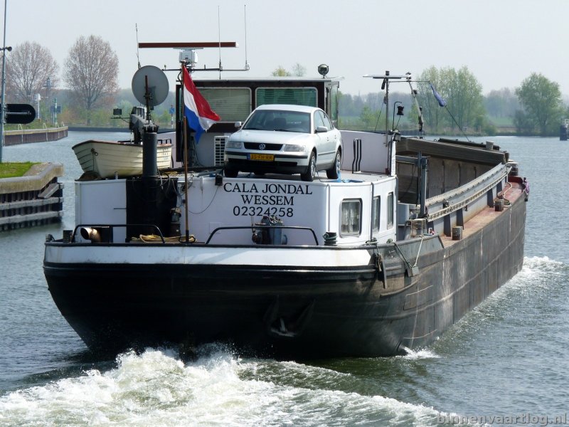 Cala Jondal , 55,10 x 7,25 x 2,61 , 700 ton , Bouwjaar 1958 , Werf Manil & Kind in Ledeberg ( België ) , 355 pk GM en 220 pk DAF boegschroef , ex Jason , ex Banzai , ex Henriette , ex Bazan , ex Floan , ex Cleopas , ex Henjo , ex Misonda , eigenaar W. Drenth in Wessem , ENI 02324258