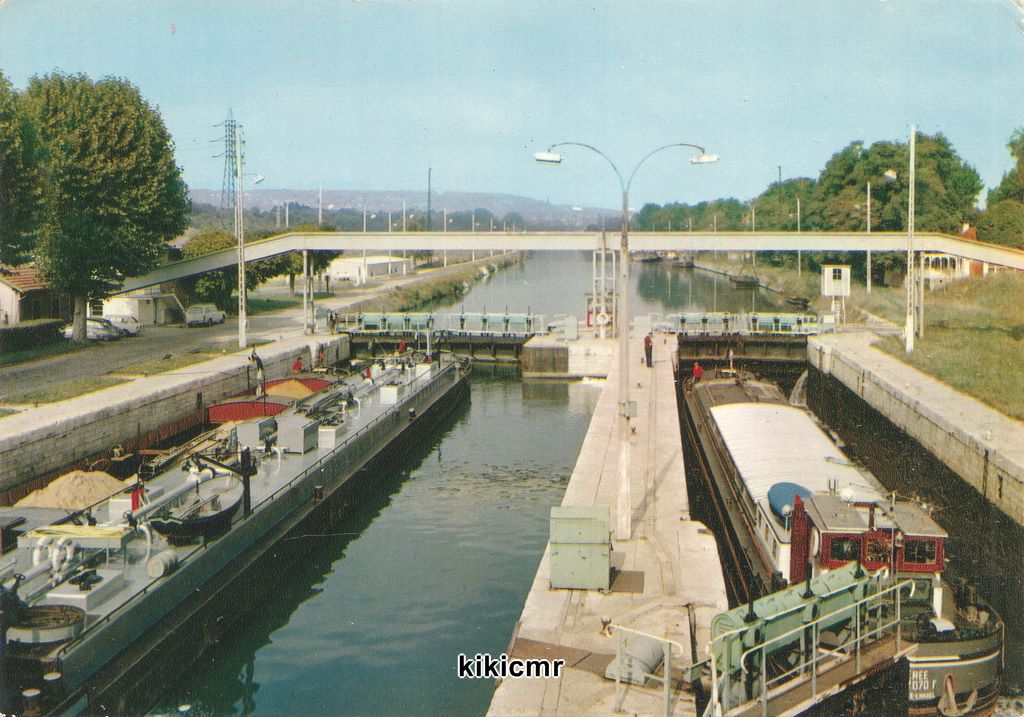 Sur une carte postale non datée de l'écluse de Carrières-sous-Poissy, dans le sas à droite :