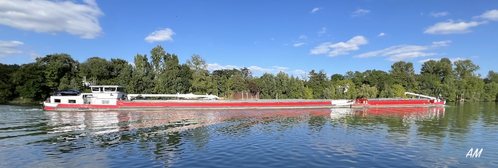 "J'étais vers les 11h30 du côté de Puteaux, et j'ai vu un bateau avec une barge devant mais pas une barge carrée, une barge encastrée dans l'autre...