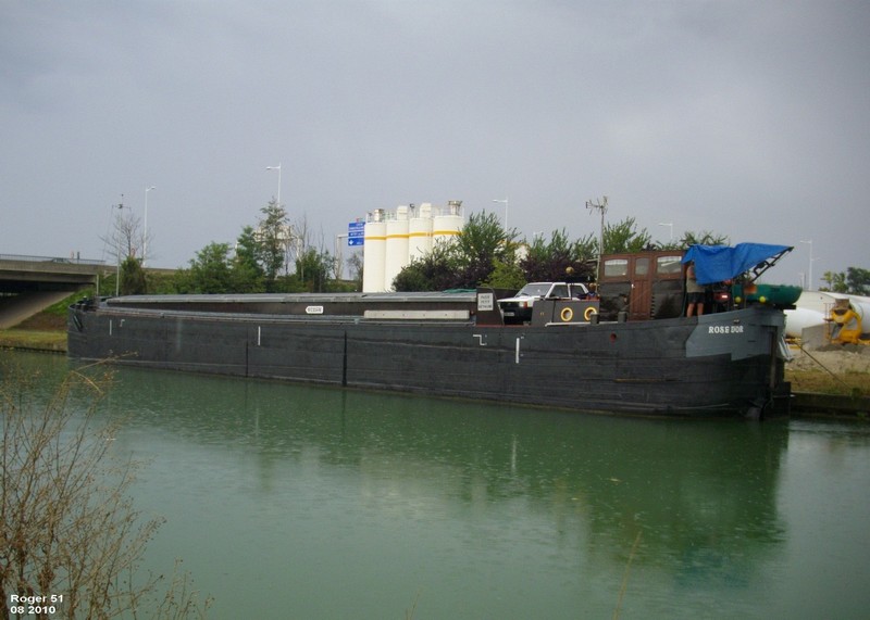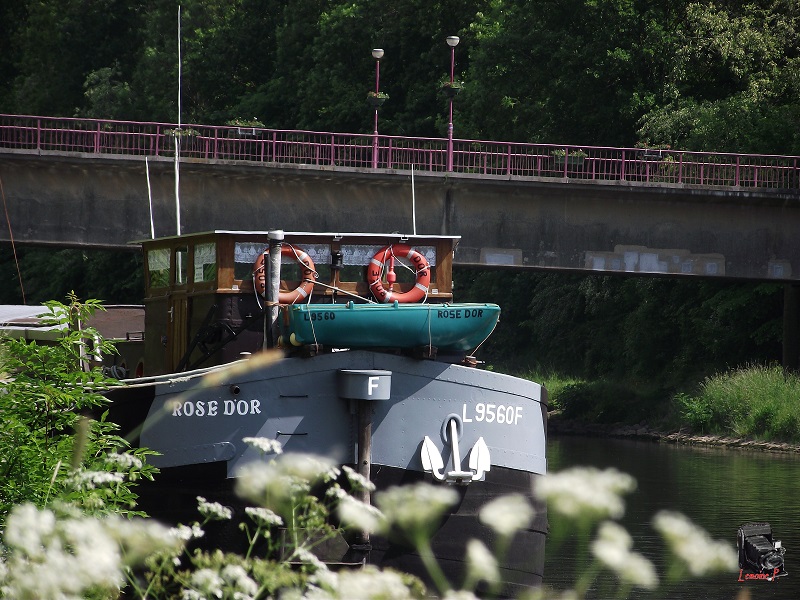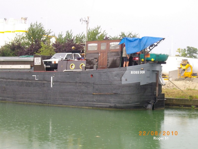 Le "Rose d'or" Li 9560 F- N° Int.18 23077K Long. 38,54 - Larg. 5,03 - Gt 388 Si j'ai bien entendu depuis l'autre rive ,il est de 1954 Propulsé par un D K 6