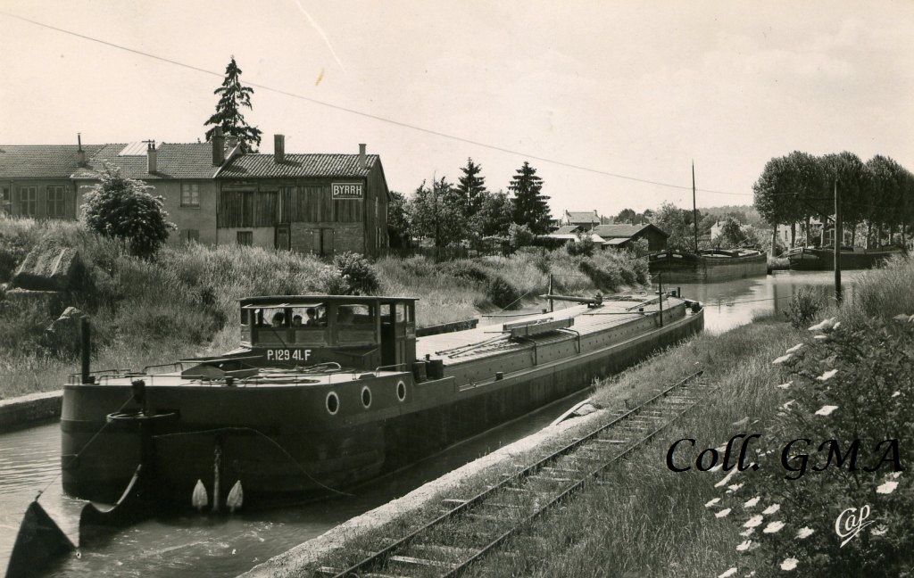 Sur une carte postale de Vitry-le-François non datée, un bateau avec un matricule bien lisible :