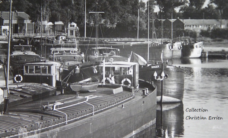 En complément quelques images de ce bateau sous sa devise BINGER: une photo personnelle prise en 1991 à Auxerre ainsi qu'une CPM Datée de 1994 et un extrait de cpsm sur la Lézarde vers 1950