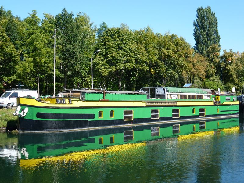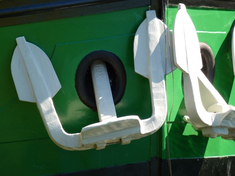 (renfort ? défense ?) à l'arrière, et les tôles peintes en noir à l'arrière aussi qui sont bien courbées jusqu'à quelques cm au-dessus de l'eau, comme sur les bateaux au cul "boule" (?)