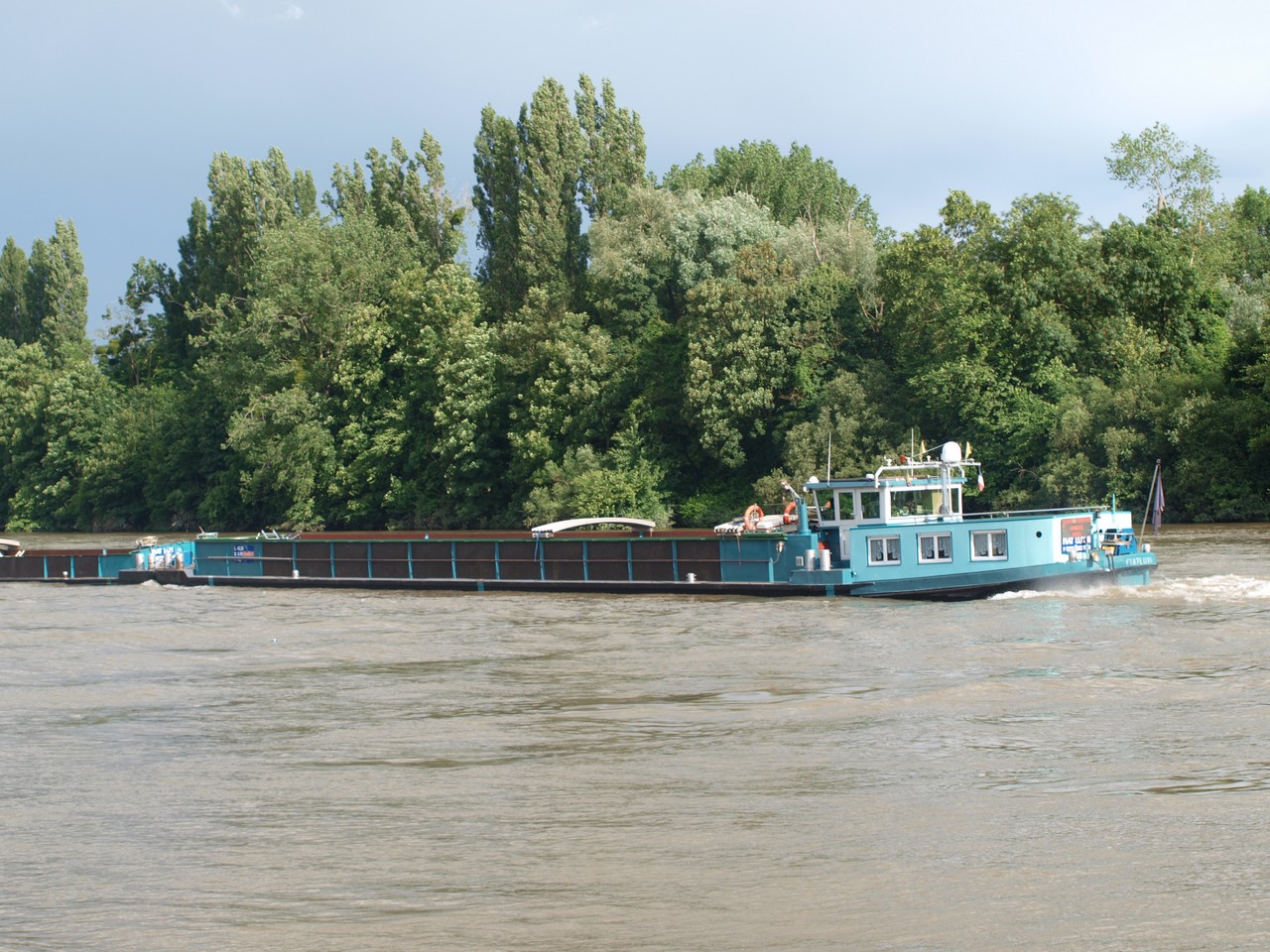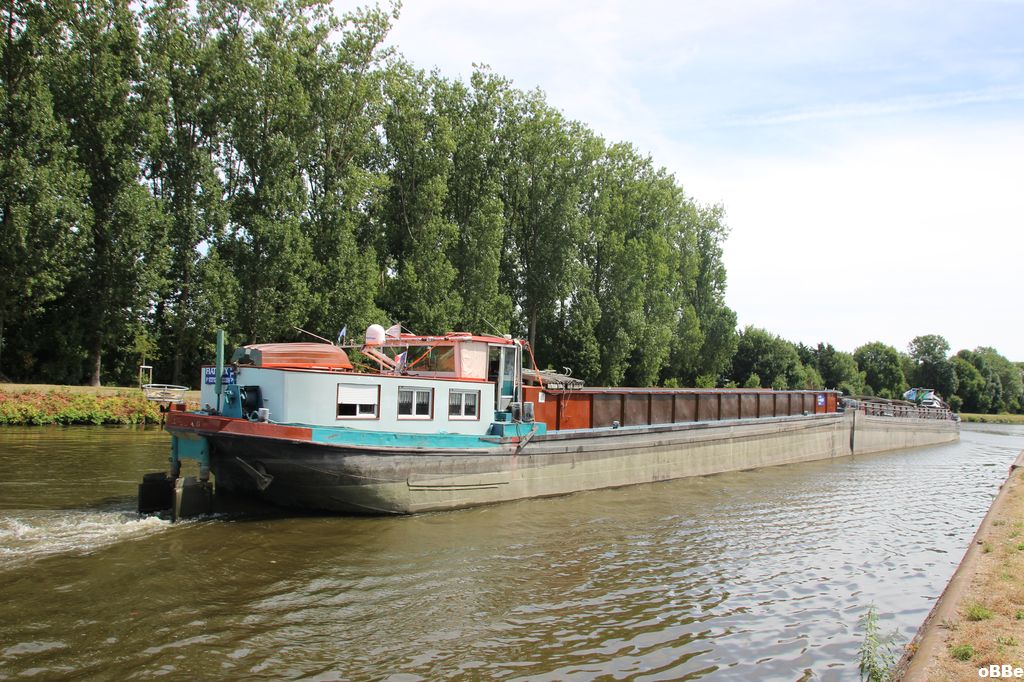 Je ne pense pas qu`il soit trop compliqué d`aller sans la barge si necessaire. J`ajoute une photo d`un bateau coupé de la même facon (c`est-à-dire avec un nez rectangulaire) qui va seul pour aller chercher sa barge sur la Moselle.