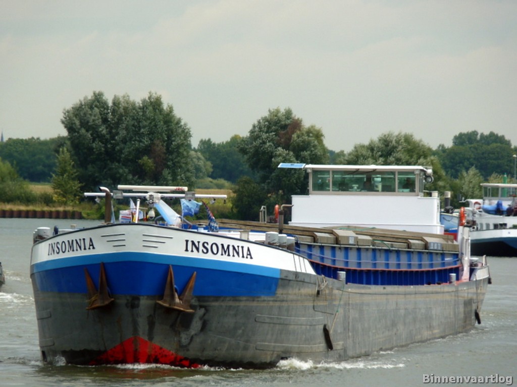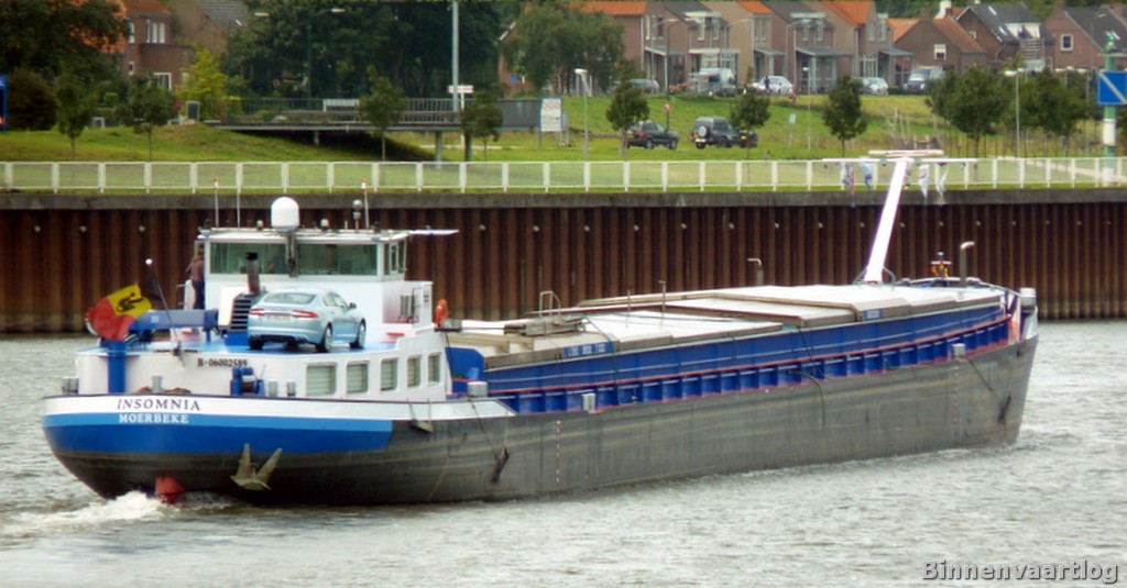Insomnia , 79,92 x 9,00 x 2,71 , 1332 ton , Bouwjaar 1965 , Werf Chantier Naval de Rupelmonde ( CNR ) in Rupelmonde ( Belgie ) , 867 pk Caterpillar , ex Zuidzee , eigenaar Bosmans.M en S.Caulier in Moerbeke , ENI 06002589