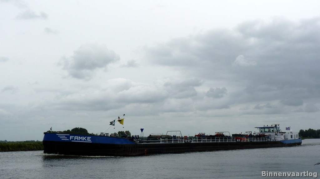 Famke , 84,50 x 9,47 x 2,56 , 1481 ton , Bouwjaar 1962 , Werf Chantier Naval de Rupelmonde (CNR) in Rupelmonde ( België ) , 750 pk Deutz en 280 pk Deutz boegschroef , ex Norbert , ex Ernst Gerhardt Sr , ex Landegge , eigenaar Friesland Oil Transport in Harlingen , ENI 04801260