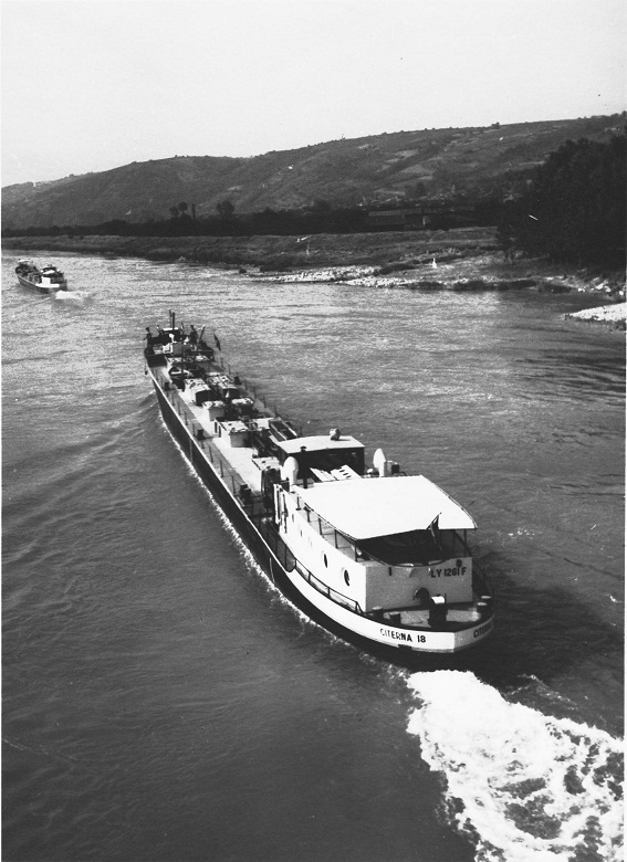 CITERNA 18 montant, sortant de l'écluse de Port-Saint-Louis-du-Rhône vers 1952.