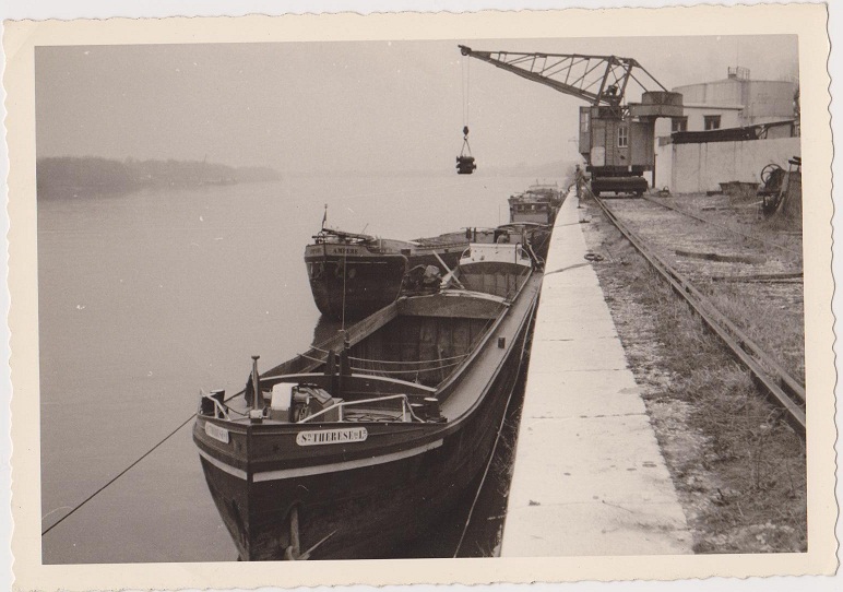 Bien que cette photo soit déjà dans le SAINTE THÉRÈSE-DE- L., on voit l'AMPÈRE de loin, mais de face, en phase de chargement au quai de La Roquette à Arles.