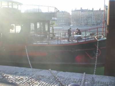Ce bateau est actuellement garé en rive gauche du rhone à lyon.