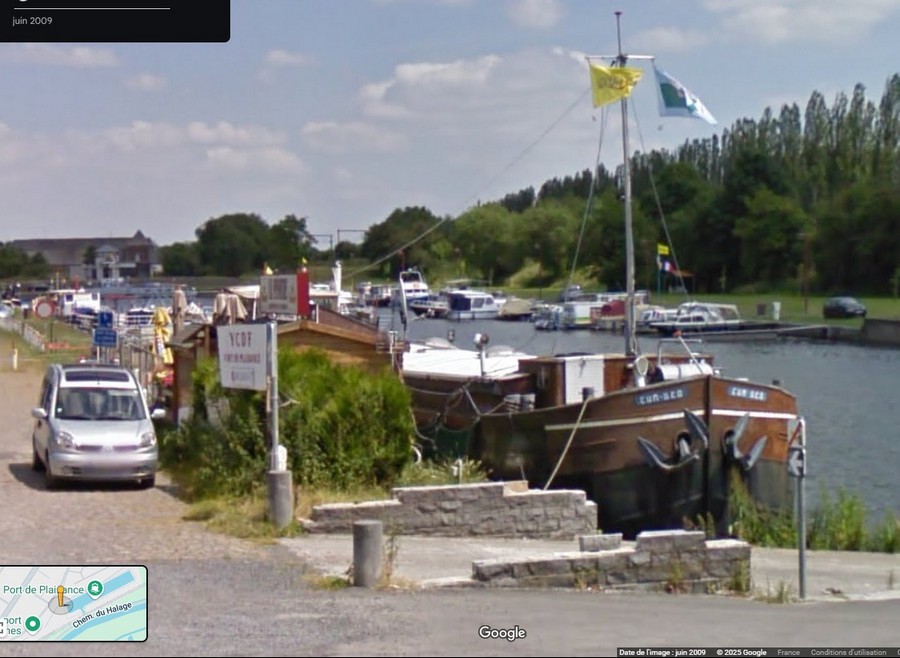 C'est le bateau du Yacht Club d'Erquelinnes ; dans le groupe Facebook Vagus-Vagrant, Guy-Orvanne a émis l'hypothèse du CUM DEO à Miot, construit à Tielrode en 1943, et j'en ai eu la confirmation par Jean-Paul et Michel Miot dans un autre groupe, Spitsen & Canal du Nord 's van diverse lengtes : c'est bien le bateau de leurs parents, mis à l'eau à Tielrode en juin 1943. Avant CUM DEO, il s'appelait JUMAR, de Julien et Marguerite de Winter, les précédents propriétaires.