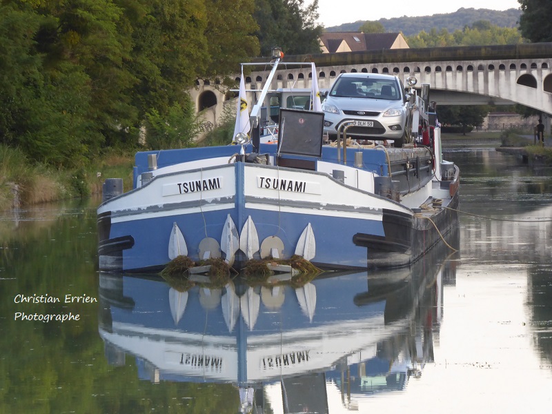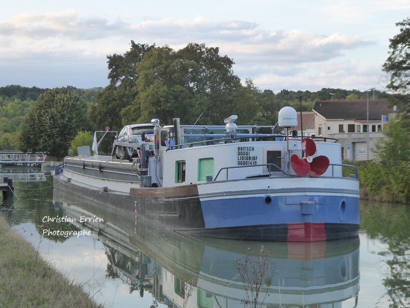 Voici ce bateau en photo avec sa nouvelle devise. Nous sommes à Moret , le bateau a chargé de l'orge à Nemours pour Ruisbroek. Les 38m de commerce sur le canal sont devenus particulièrement rares.