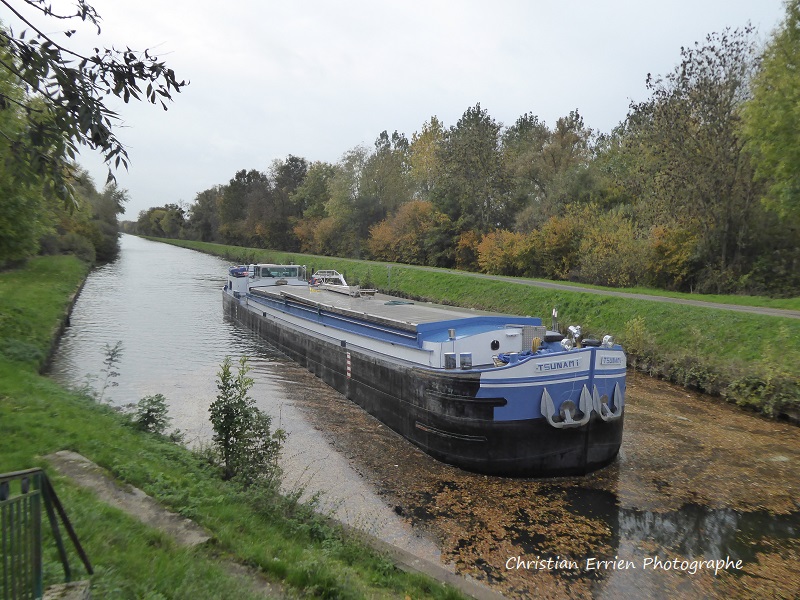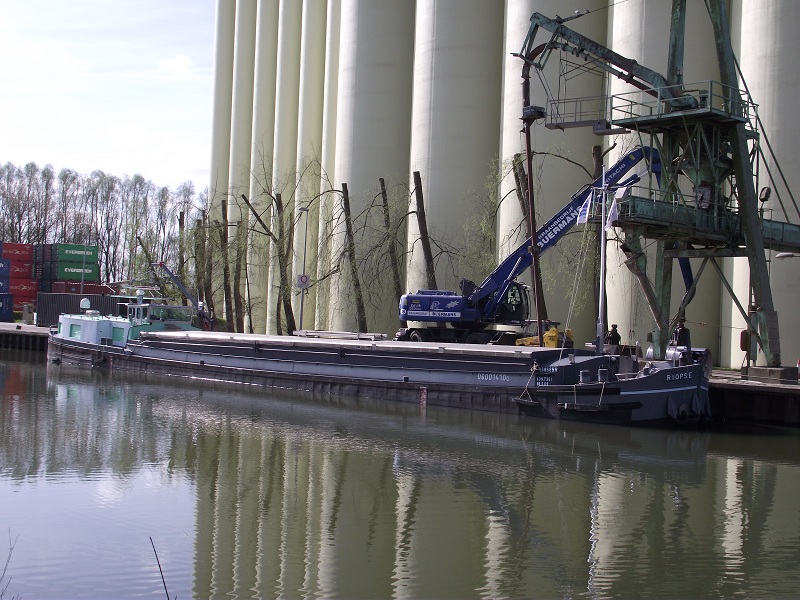 Sur la photo du port d'Origny Ste Benoîte on voit une grue à gauche du Cook qui sert à transborder la vase d'un bateau à l'autre afin de compléter le chargement et de faire partir vers Maizy des bateaux chargés à 1m80.