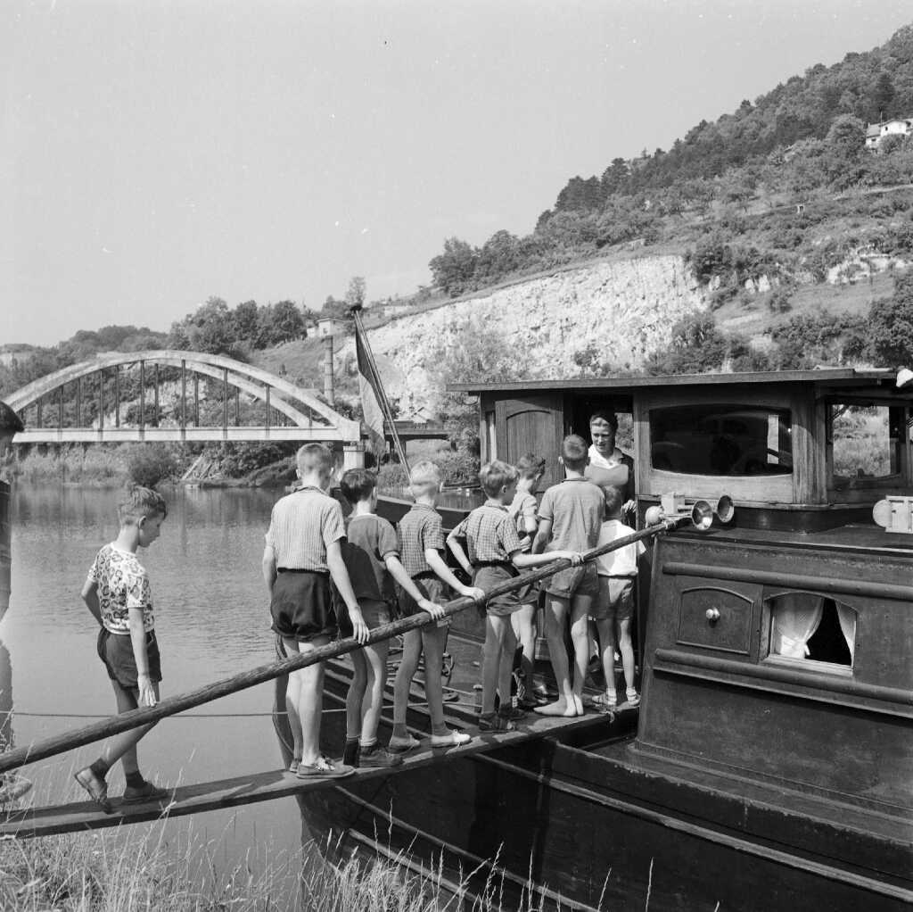 Voici le FREDY dans une série de photos conservée aux archives municipales de Besançon, prise en juillet 1958 par le photographe Bernard Faille (carte de presse n°11430) : "reportage port fluvial et péniche avec visite d'enfants" ; il est amarré sur le Doubs, à Besançon (Tarragnoz), devant lui, à droite, il y a l'entrée de la voûte de la Citadelle
