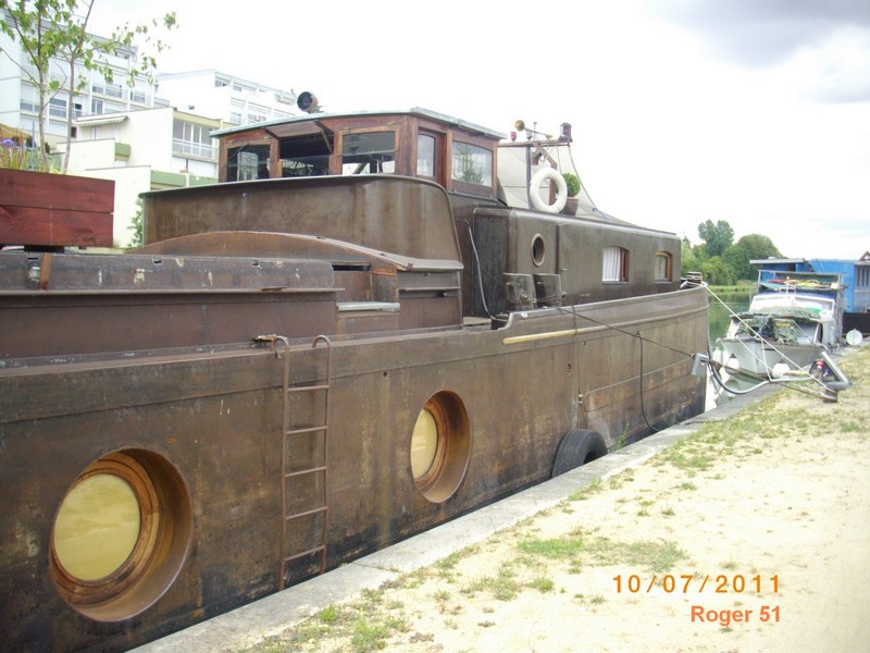 Maintenant remotorisé avec un Berliet de 140cv, l'ancien moteur du "Nenuphar" (péniche-hotel), il a passé quelque mois dans la câle sêche de Migennes pour refaire toute la ligne de flottaison, et l'interieur du tunnel qui étaient dans un triste état, et doit être bon à nouveau pour des nombreuses années de loyal service comme bateau-logement, dans les mains de son propriétaire enthousiaste.