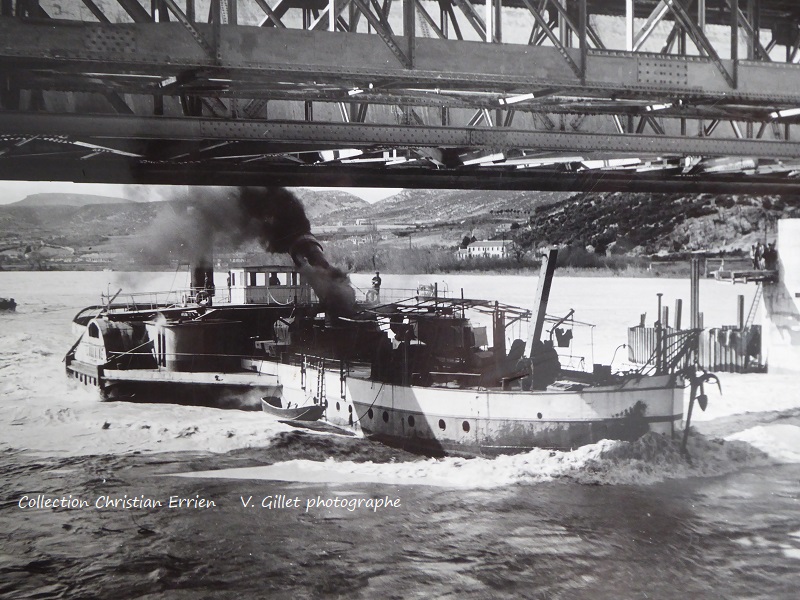 Voici Tarascon en fond, et Beaucaire en premier plan."En passant par là, LORRAINE avec ses bateaux", en remorque.