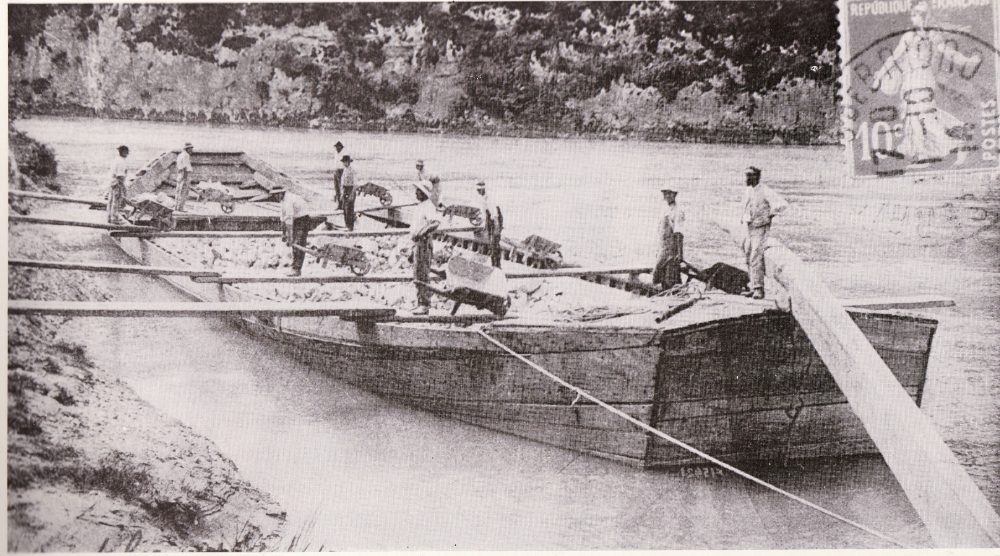 Grande Savoyarde à Seyssel, Haut Rhône chargée de pierre pour Lyon