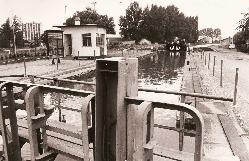 C'est à l'écluse 51 du canal de la Marne au Rhin, branche Est, versant Meurthe, à Schiltigheim. Les inscriptions sur la cabine d'écluse sont intéressantes : "ECLUSE 51 - BUREAU DE CONTROLE - ECLUSE FRONTIERE". Il s'agit en effet de la dernière écluse du canal de la Marne au Rhin. Le canal croise l'Aar à niveau juste en aval ; la 52 est une écluse de garde, au croisement avec lIll.