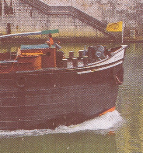 il devrait théoriquement reprendre ces voyages dans moins de deux semaine, j'espère repasser le voir avant son départ et oui j'ai oublier de demandé le chantier ainsi que la date de mise a flot, je sais par contre que ce bateau est équipé d'un moteur volvo de 510 ch, qu'il a voyager en seine puis sur le rhône Richard ma montré la marque de l'ancienne découpe sur la bordaille, pour qu'il puisse gagné le rhône il avait aussi était séparé en deux morceaux.