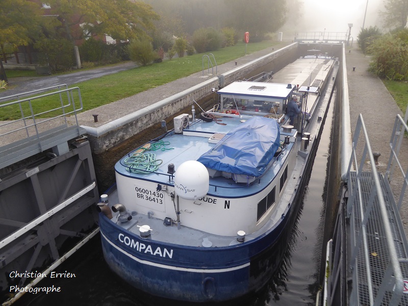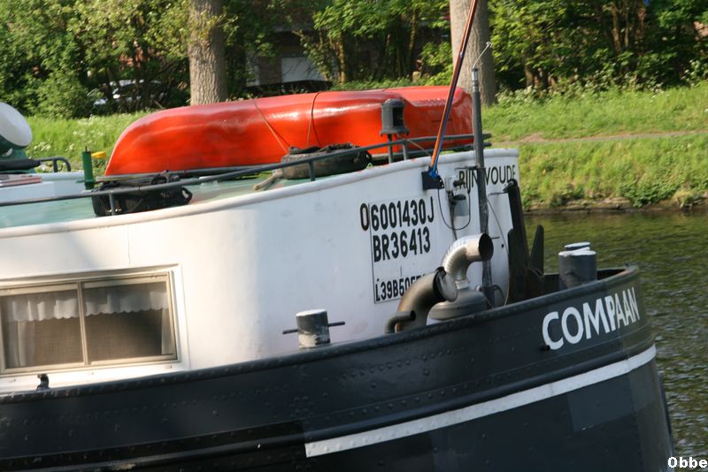 Compaan , 38,83 x 5,06 x 2,42 , 357 ton , Bouwjaar 1959 , Werf De Wilde in Burcht ( Belgie ) , 360 pk Cummins en 130 pk Iveco boegschroef , ex Apte, ex Mehari , ex La Coruna , ex Vita , eigenaar C.J.Compagne in Hazerswoude Dorp , ENI 06001430