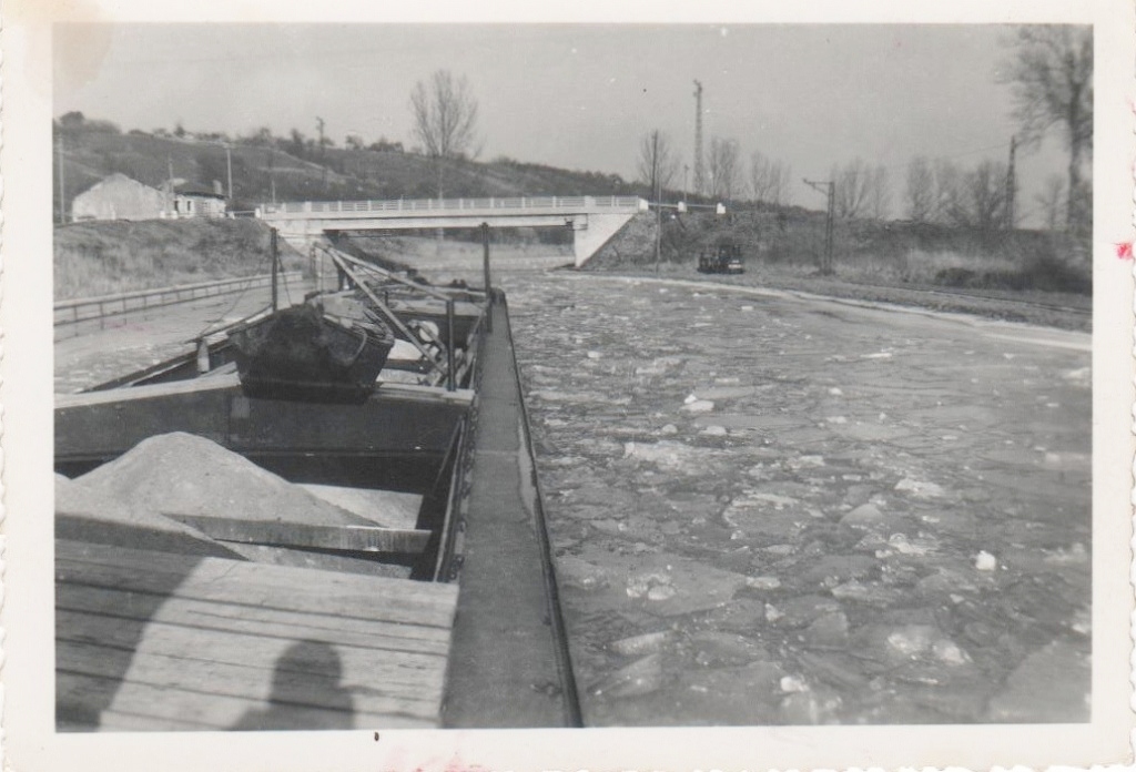 Sur la troisième (photo pas écluse) on voit un tracteur flou et pas assez contrasté, dont des détails sont cachés par le mat de canal du bateau. Les poteaux de la ligne électrique sont visibles et il semble qu'il n'y ait pas de voie. Ce serait un électrique sur pneus Schneider-Westinghouse, mais la silhouette est bizarre dans le haut, pourtant en bas ça collerait. Cette photo ne peut pas dater de la même année que la précédente, y a pas eu les deux en même temps.