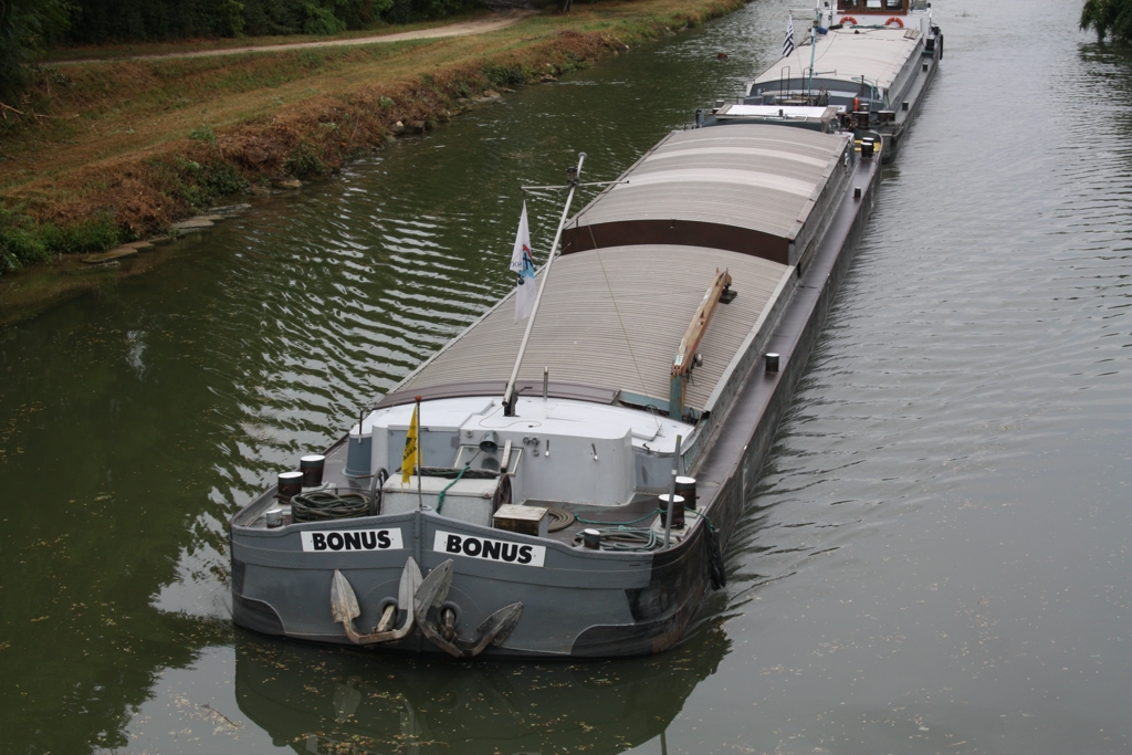Sa nouvelle vie de bateau-logement : il est en cours d'aménagement au chantier Miclo, à Dombasle ; il y a quelques semaines, il a été ballasté avec des traverses en béton, et dans la bordaille, sur le côté qu'on ne voit pas sur les photos, il y a des trous...