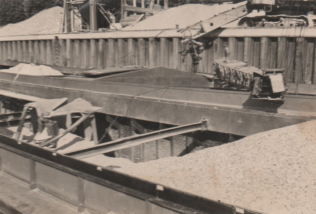 Une vieille photo du quai de Javel à Paris, mes parents travaillaient sur le Caucase (barge l'Australien). Une mauvaise manoeuvre du grutier et voilà! Personne en dessous, et mon père a pris son appareil photo.