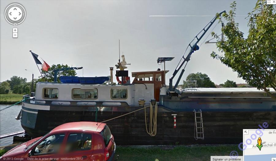 EL PASO y était amarré depuis quelques semaines, juste au moment où le marinier peignait la nouvelle devise sur le nez du bateau ! Voici ce qu'on voit sur Street View :