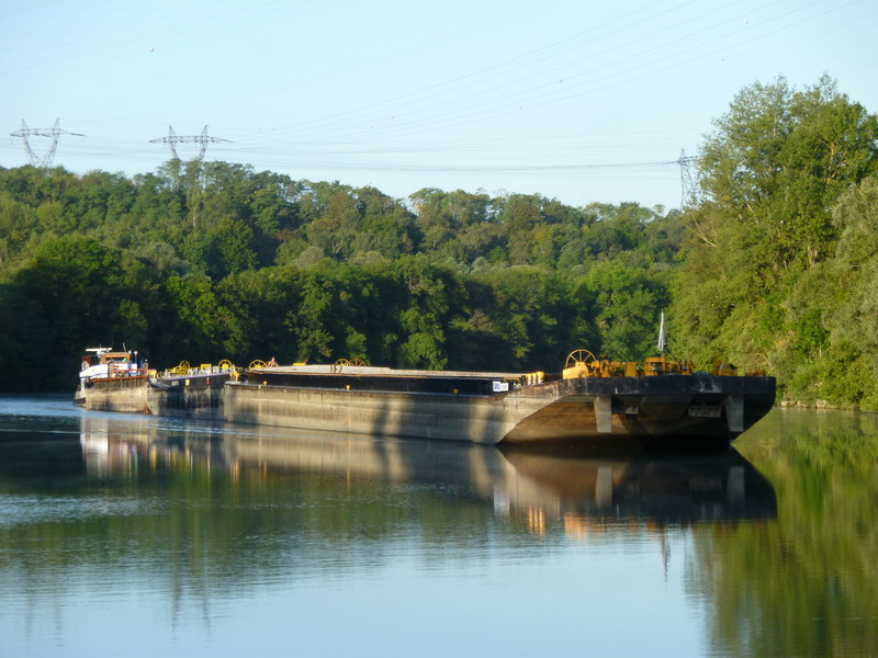 Aucune photo de ce bateau depuis 6 ans alors voici le LANGUEDOC pris lundi à Choisy le Roi avec un beau convoi sur le nez.