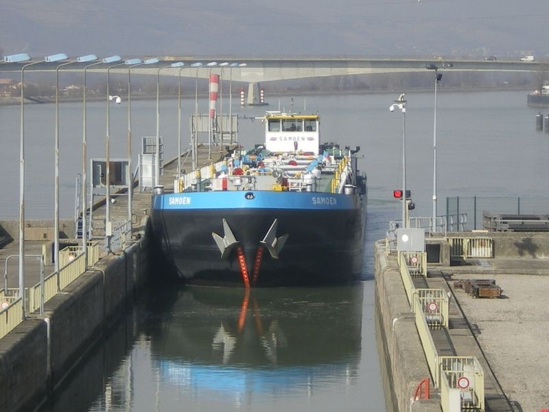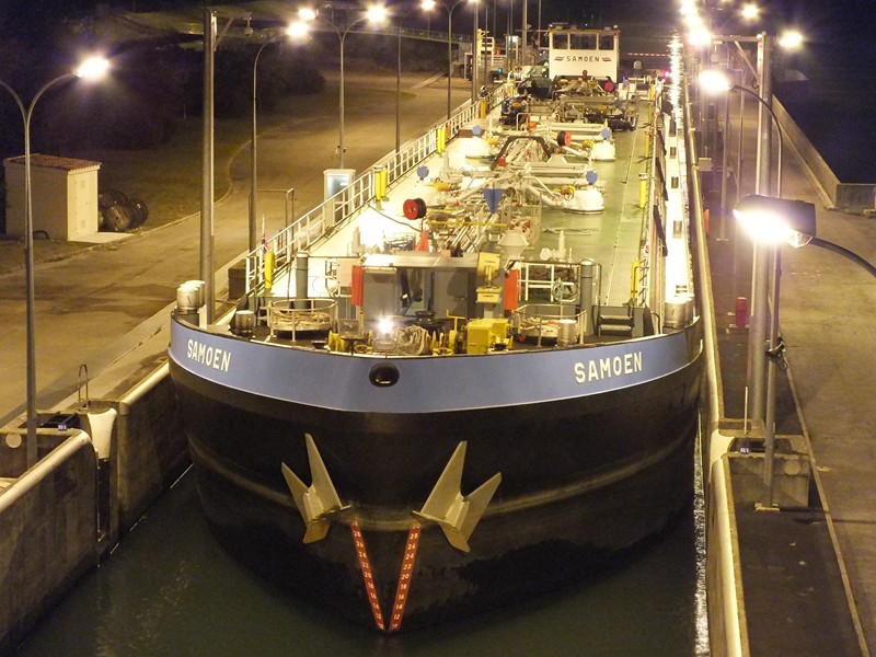 Samoen. Armement CFT GAZ. Ils viennent de l'autre cote. Leurs dimensions sont identiques : 120 X 11,40. ( 2100 t) Ils ont deux moteurs : Caterpillar. Ils transportent du CVM (legerement plus dangereux que de l'eau chaude !! ) . CVM : chlorure de vinyle monomere. Regardez bien ,sur l'arriere des bateaux, juste au dessus des ancres,ils sont equipes pour etre brele avec un pousseur en cas de panne.Personnellement,j'ai vu le cas qu'une fois en + de 15,avec le Passaat. CFT Gaz a pense a tous .