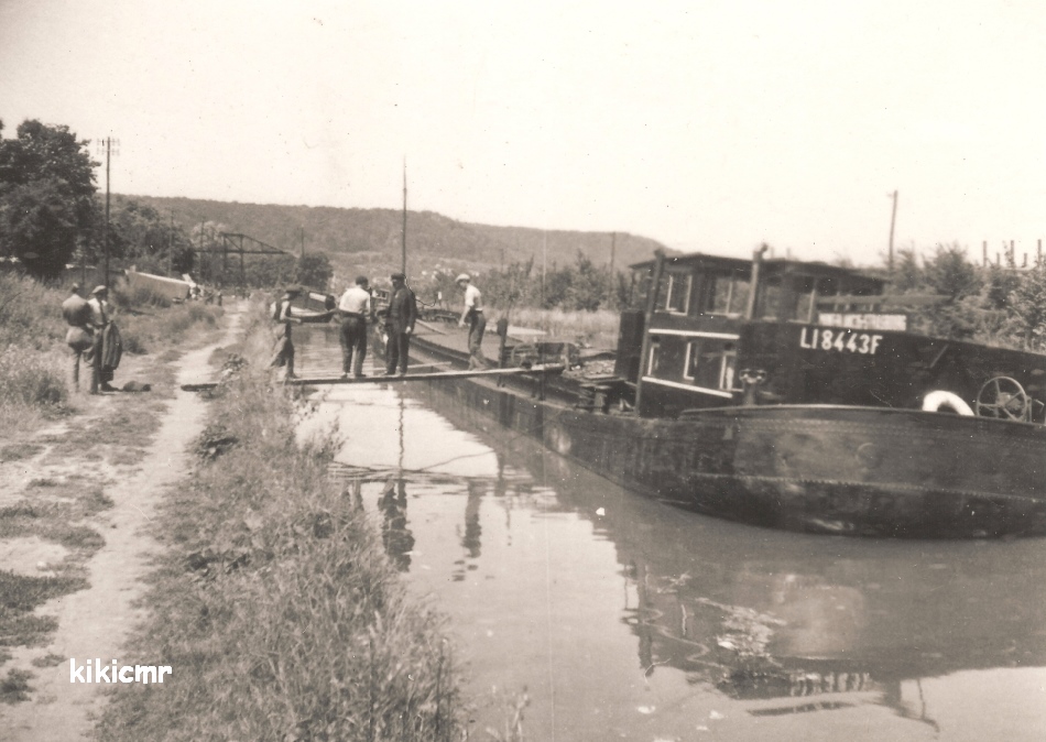 (Rhein-Marne Kanal) près d'Aingeray". Aingeray (54), entre Toul et Nancy, à cet endroit aujourd'hui le canal est remblayé, et remplacé par la Moselle canalisée à grand gabarit. Je pense qu'elle a été prise par un soldat allemand en mai-juin 1940, mais ce n'est pas écrit..