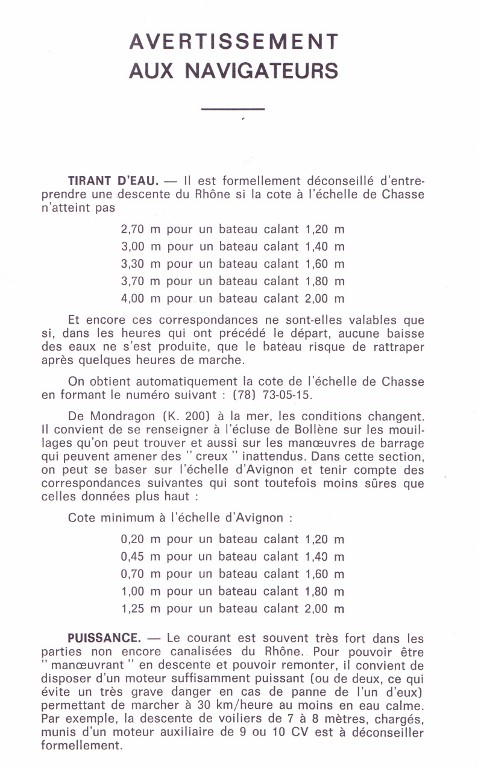 Ces échelles donnaient aussi le tirant d'air, par grosses eaux, sous les ponts difficiles (viaduc SNCF d'Avignon, pont de Beaucaire...., porte de garde de Donzère ou portes aval des écluses parfois).