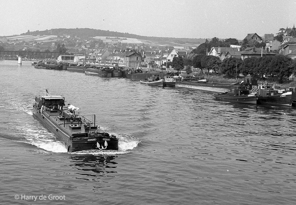 Le ROMANE dans la Revue de la navigation intérieure et rhénane du 25 juin 1956, qui illustre un article de François Plaquet, "La rénovation du Parc fluvial belge" :