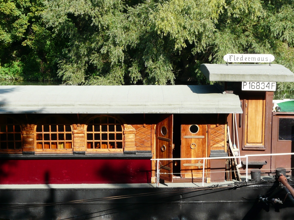 On y voit la péniche du Musée Grévin amarrée, sur le canal des Ardennes :