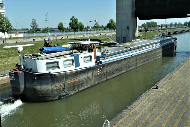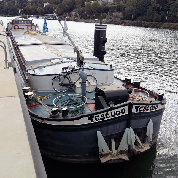 TESTUDO sont les deux derniers 38 mètres chargés à avoir fait la Meuse française en entier ; c'était dans le sens Givet - Troussey, avec des engrais chargés à Anvers. Le premier allait à Villefranche-sur-Saône et le second, à Chalon-sur-Saône. C'était en septembre 2021.