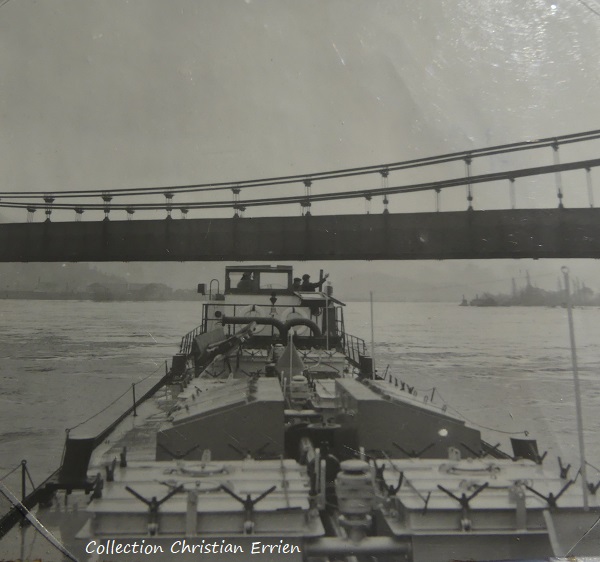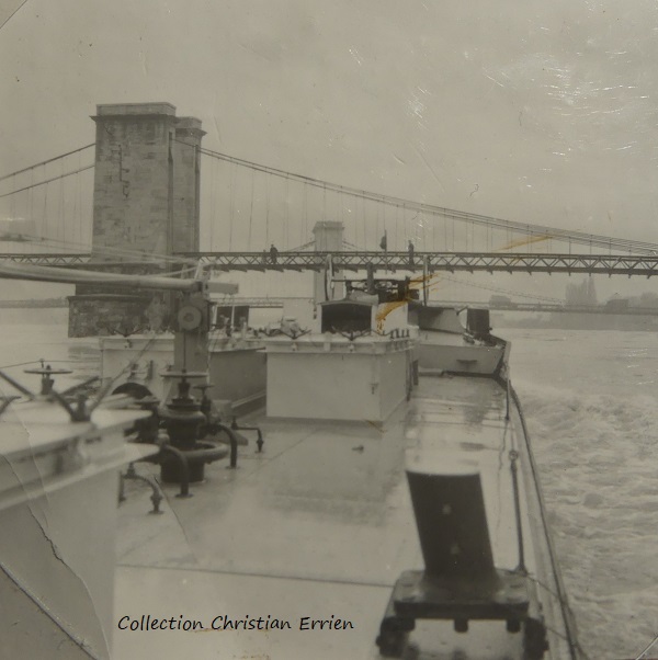 Il s'agit donc d'une descente du Rhône par temps de crue à bord d'un CITERNA. La seule photo prise à quai est malheureusement floue. On voit le capitaine à la barre et un bateau démarquisé pour passer sous les ponts ; il devait y avoir pas mal d'eau. J'ai numéroté les photos afin de pouvoir nommer les lieux si vous connaissez.