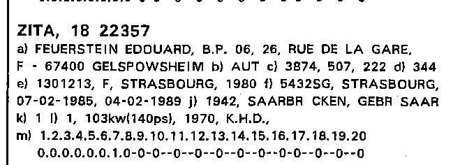 ELBE a appartenu à ses parents et que c'est là qu'il a été immatriculé à Strasbourg, sous le numéro 1213 ; Jacky B. rajoute que la famille Zimmer était de Grosbliederstroff, dans les années 70. Et c'est après qu'il a été rebaptisé