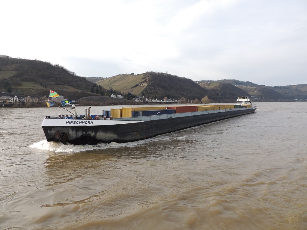 Hirschhorn , 135,00 x 11,45 x 3,20 , 3318 ton , Bouwjaar 2000 , Werf Kiliya Shipyard in Odessa ( Ukraine ) en Erlenbacher Scheepswerf in Erlenbach ( Duitsland ) , 1800 pk ABC en 695 pk Caterpillar – Veth-Jet boegschroef , eigenaar Seibert GmbH in Neckargemünd , ENI 04608410