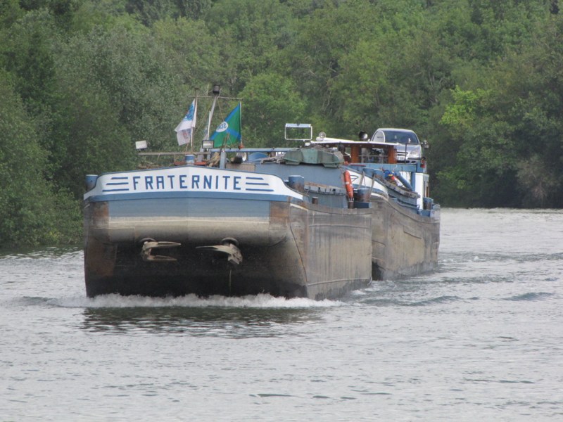 Andy tu as peut -être raison, car le Fraternité me semble plus long . Cependant le tonnage, comme indiqué à l'arrière sur les roufs, est plus important sur le Daru= 438 T que sur le Fraternité = 365 T. Mais que je le dis toujours je suis un absolute beginner et je me suis basé sur ce que la Dame batelière m'a raconté. C'est vrai que c'était un dimanche matin en 2006, très tôt