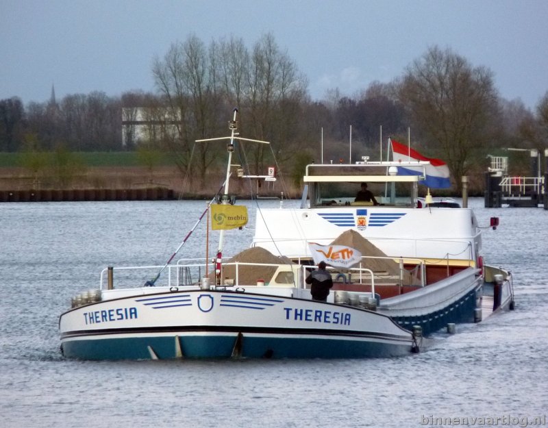 Thesresia , 84,95 x 9,52 x 2,82 , 1521 ton , Bouwjaar 1965 , Werf van Goor in Monnickendam ( Nederland ) , 976 pk MWM , ex Leopold Ronald , eigenaar J.P. v/d Velpen in Terneuzen , ENI 03110611
