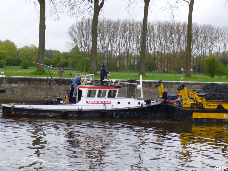 Dragage de l'Espierre du coté d'Estaimpuis Saint Leger. A la pousse des barges.