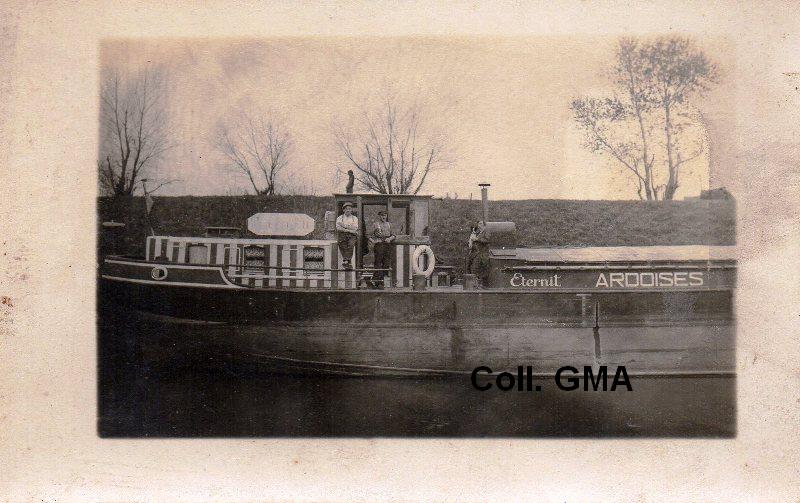 Le voici, vu de l'avant, sortant montant de l'écluse de Marchiennes, sur la Scarpe (carte postale écrite en 1938) :
