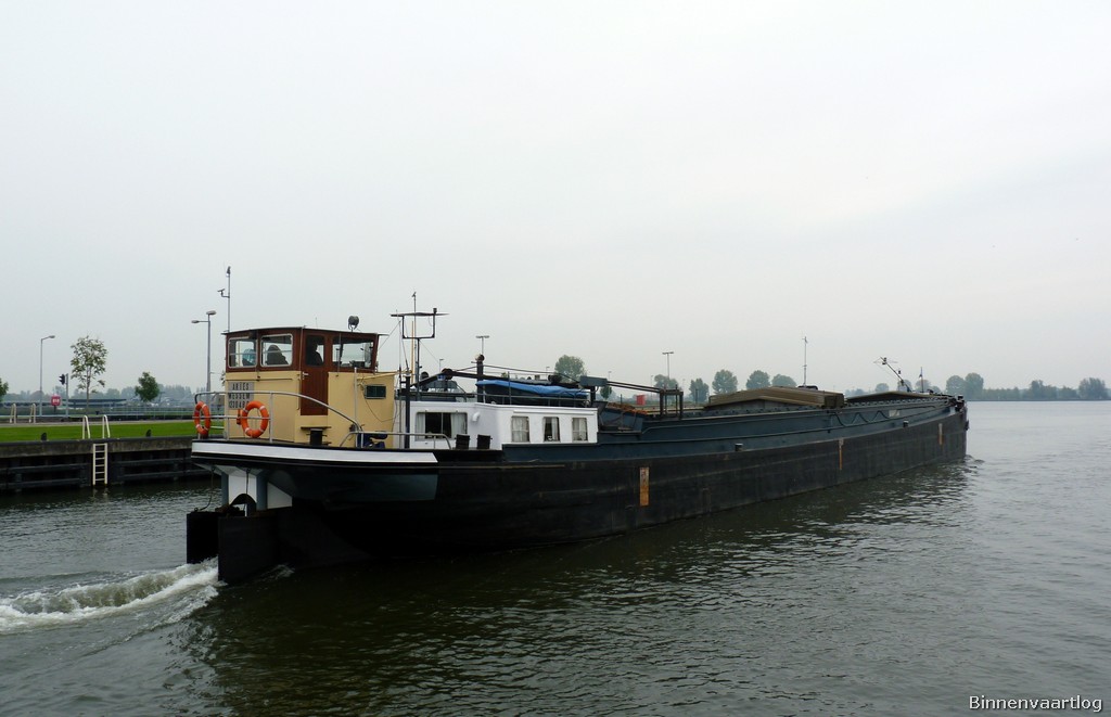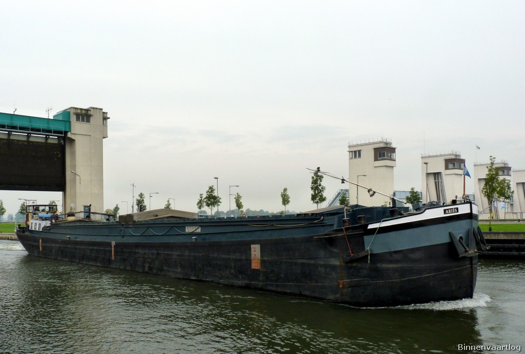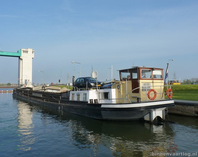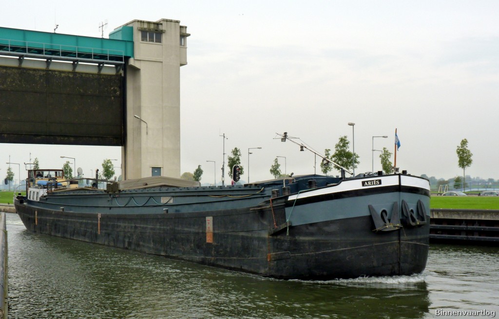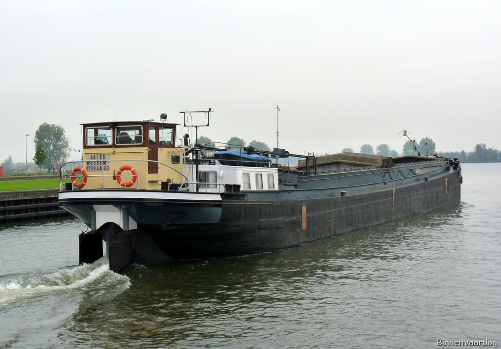Ariës , 49,90 x 6,60 x 2,46 , 551 ton , Bouwjaar 1930 , Werf Gebr. Boot in Delft ( Nederland ) , 350 pk DAF en 219 pk DAF – Ballegooy boegschroef , ex Louise , ex Zes Gebroeders , ex Fatima , ex Aqua Filia , ex Spera , ex Erato , ex Ariës , eigenaar H.J.M. van Vugt in Wessem , ENI 02304893